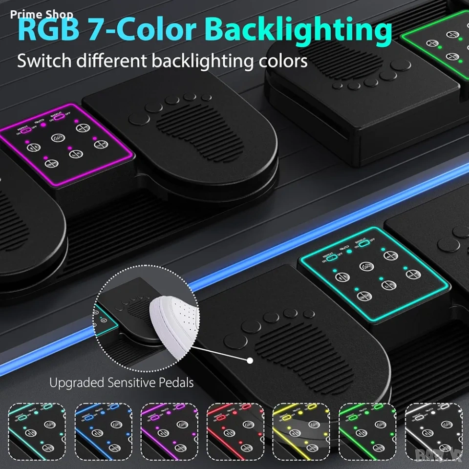 * Вградена 7-цветна RGB подсветка, осигуряваща отлична видимост на бутоните при слабо осветление или на тъмна сцена.