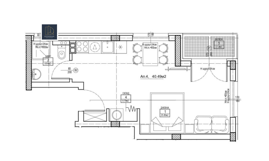 DOMERA представя компактен еднопространтсвен апартамент в нова модерна жилищна сграда.