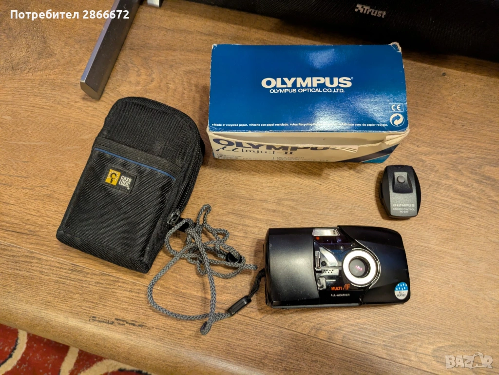 Продавам фотоапарат Olympus μ[mju:] II f2.8, липсва предния капак, но си работи безпроблемно. С дистанционно Olympus RC-200, калъф и оригиналната кутия.