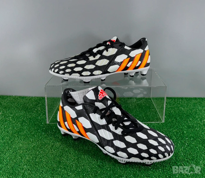 Adidas Predator Absolion Instinct FG, част от колекцията „Battle Pack“, пусната за Световното първенство по футбол през 2014 г.. Дизайнът се отличава с характерната черно-бяла шарка и ярко оранжеви ивици на Adidas.