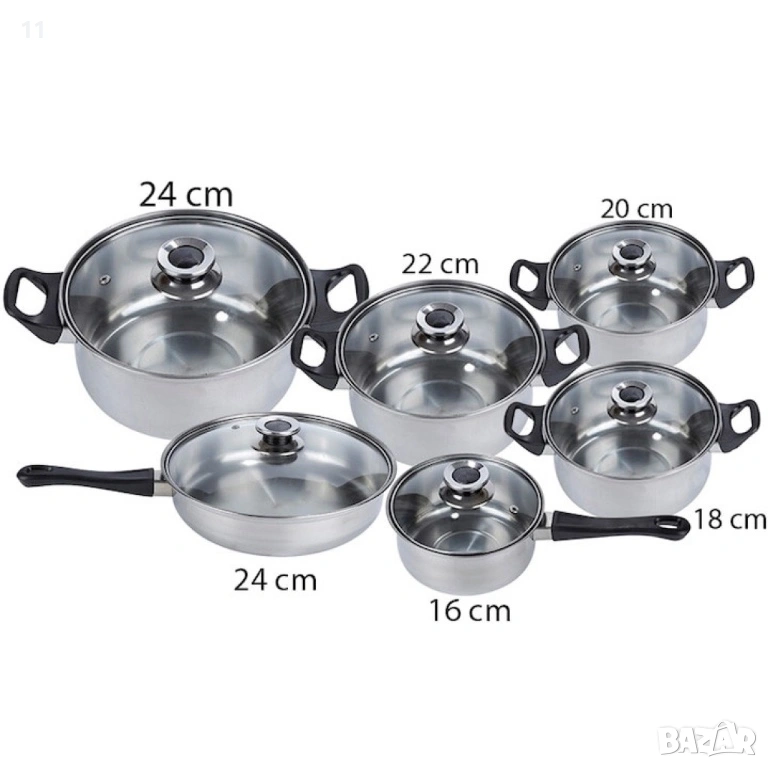 Комплект готварски съдове от инокс 12 части: 5 тенджери, тиган и стъклени капаци (16-24 см), снимка 1 - Съдове за готвене - 53542360 Комплект готварски съдове от инокс 12 части: 5 тенджери, тиган и стъклени капаци (16-24 см), снимка 2 - Съдове за готвене - 53542360 Комплект готварски съдове от инокс 12 части: 5 тенджери, тиган и стъклени капаци (16-24 см), снимка 3 - Съдове за готвене - 53542360 Комплект готварски съдове от инокс 12 части: 5 тенджери, тиган и стъклени капаци (16-24 см), снимка 4 - Съдове за готвене - 53542360 Комплект готварски съдове от инокс 12 части: 5 тенджери, тиган и стъклени капаци (16-24 см), снимка 5 - Съдове за готвене - 53542360 Комплект готварски съдове от инокс 12 части: 5 тенджери, тиган и стъклени капаци (16-24 см), снимка 6 - Съдове за готвене - 53542360 Комплект готварски съдове от инокс 12 части: 5 тенджери, тиган и стъклени капаци (16-24 см), снимка 7 - Съдове за готвене - 53542360 1/7