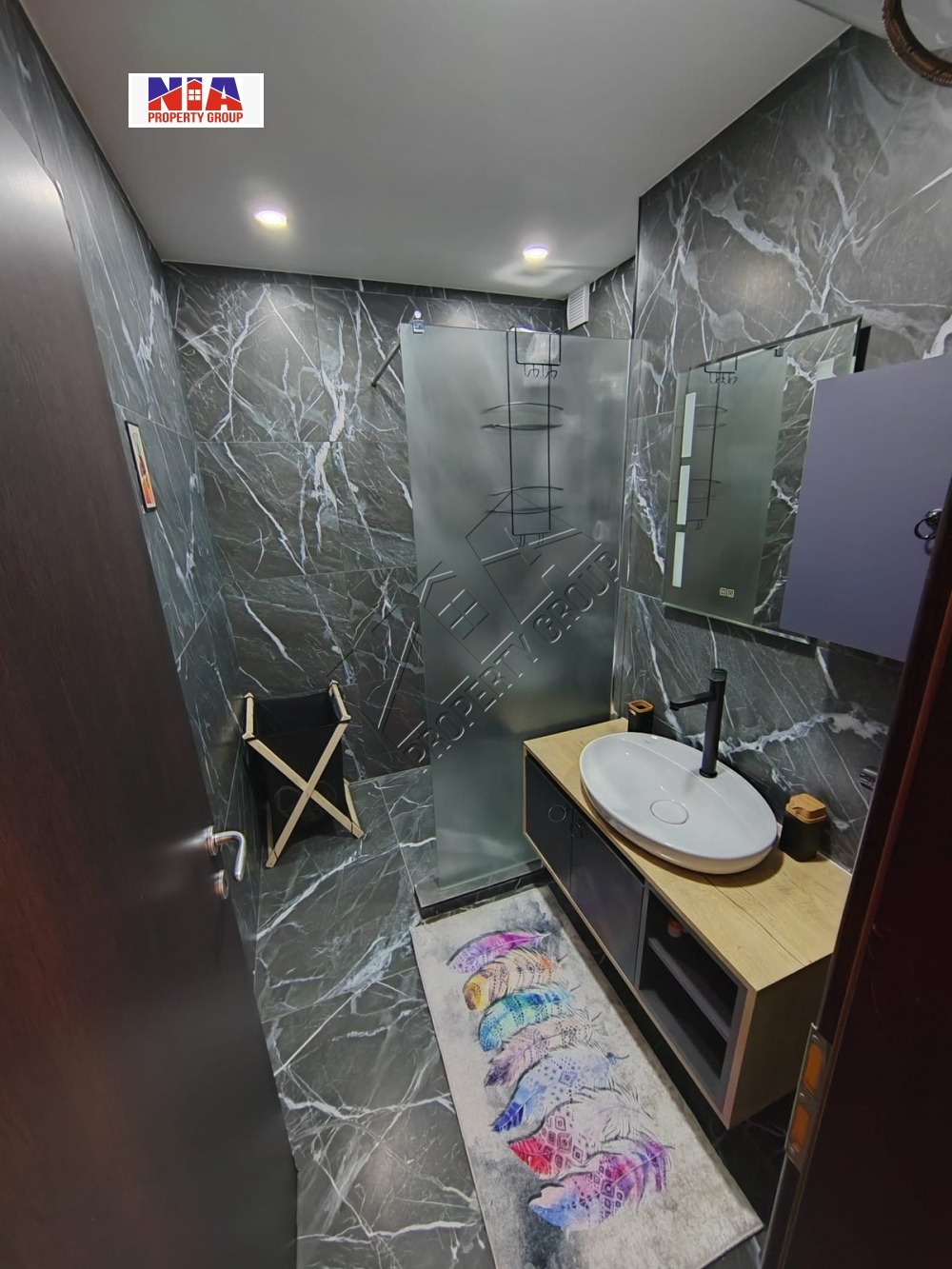 Имотът е обзаведен по всички критерии на съвременния интериорен дизайн, с висок клас мебели и техника, климатизиран, съчетан с луксозното и функционално изпълнение на баня и WC.