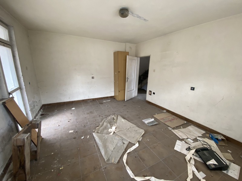 ПЪРВИ етаж са разположени три стаи , баня с тоалетна и тераса с гледка. ВТОРИ етаж са разположени три стаи, баня с тоалетна и тераса.Голям гараж и парцел към къщата от 730 кв.м.Имотът освен за къща може да бъде използвана като клиника или каквото е рещил бъдещият собственик.За ремонт.