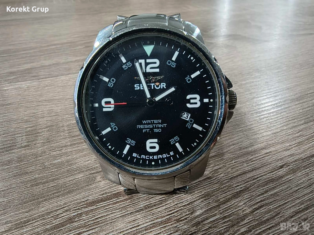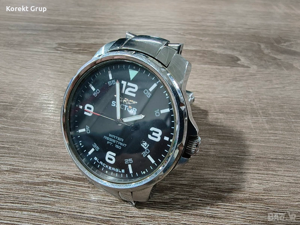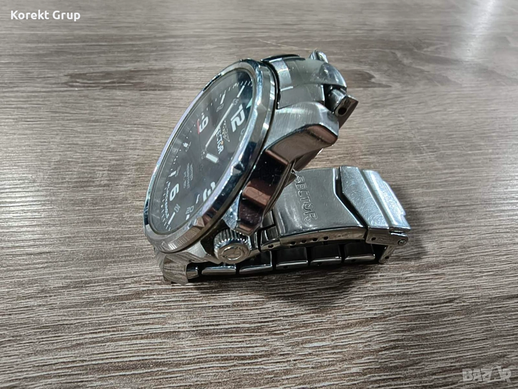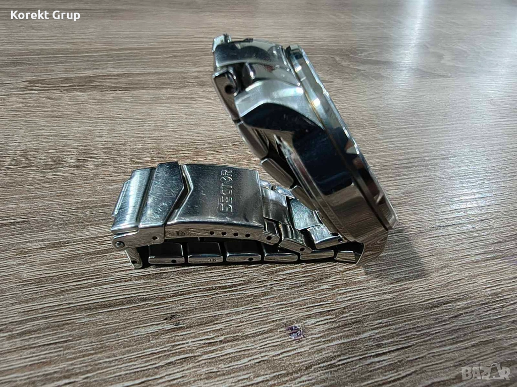 Мъжки часовник Sector отлично състояние стъклото няма драскотини верижка има нормални следи от употреба.Може да се види на място за гр.Варна или да се прати по еконт с преглед и тест..