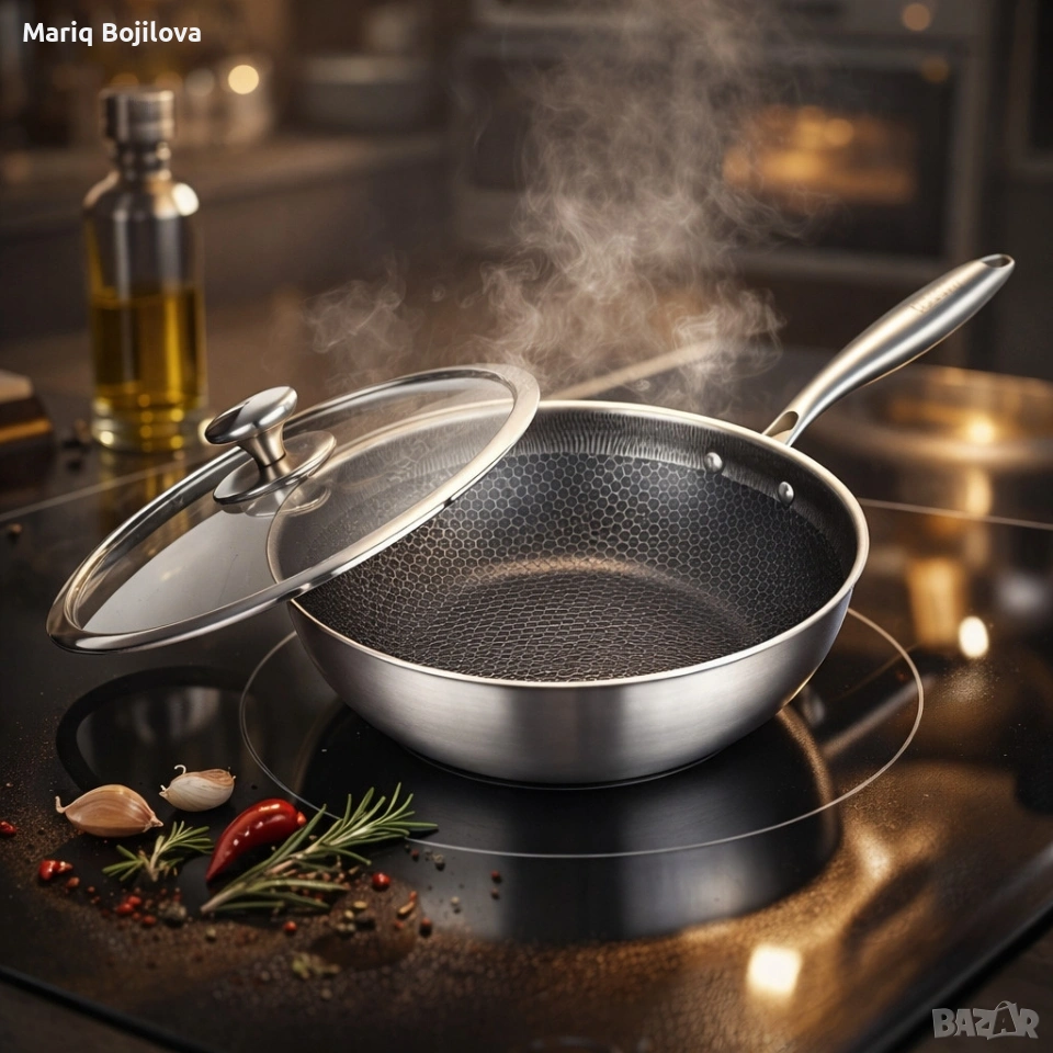 ⚜️Уок тиган с капак Goldmann Fusionhex Pro GM 1128-28WK, 28x8.5 см., Незалепващо Покритие, Неръждаема стомана