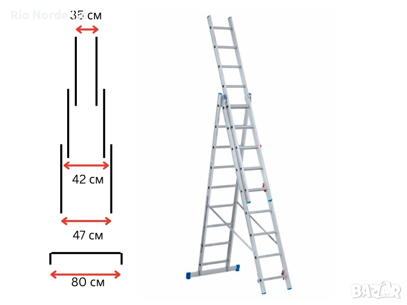 3 x 9 Сгъваема Алуминиева Стълба WK‑E09. Професионална и здрава.
