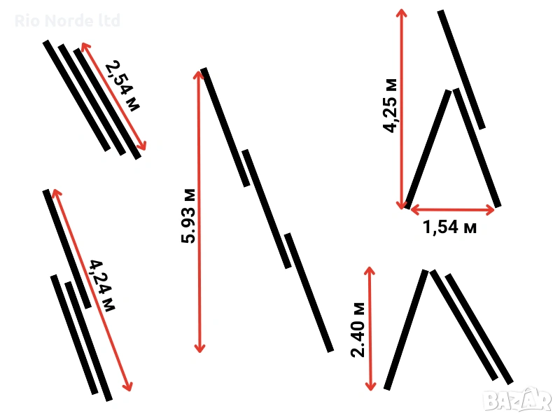 • 4 конфигурации: права, А‑образна, удължена А‑образна и компактно сгъната