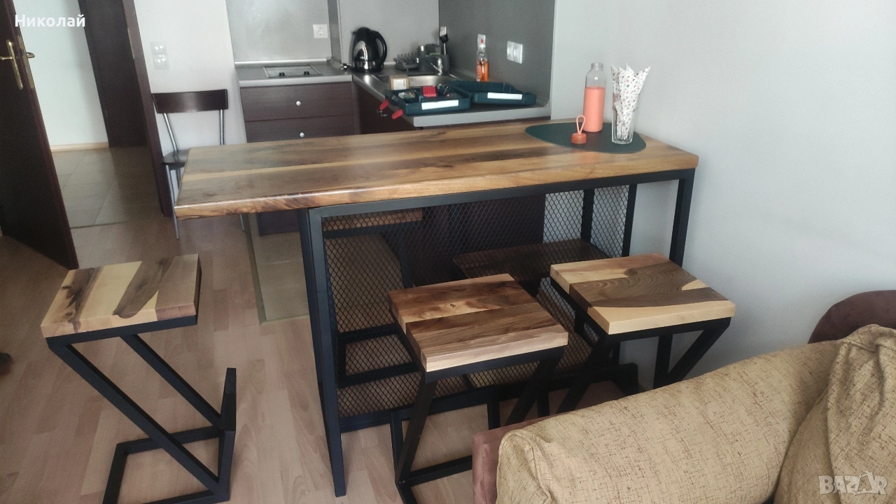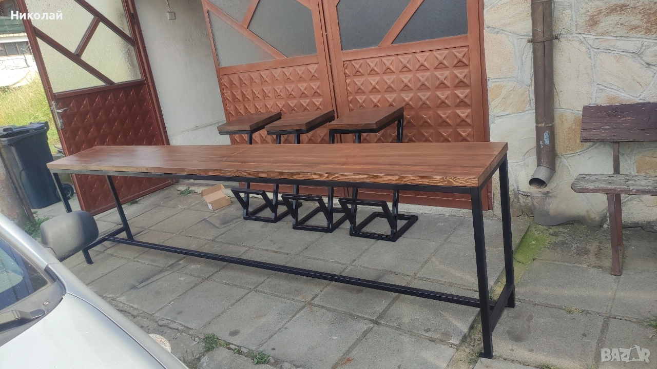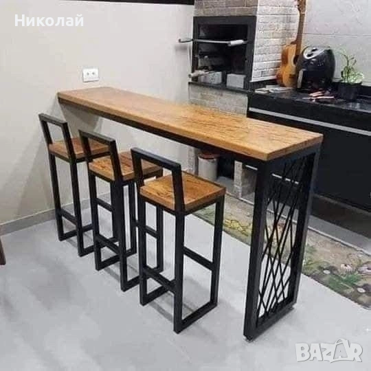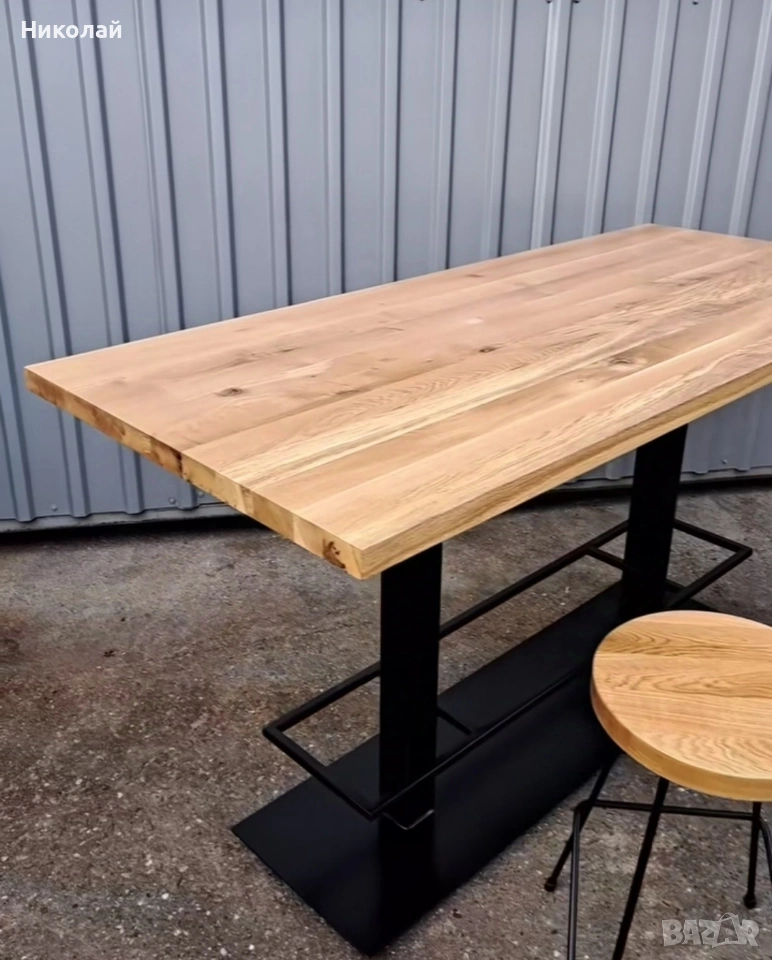 Бар маси от масив и метал – подходящи за вътрешни и външни пространства Изработвам бар маси от масив и метална конструкция, създадени за интензивно натоварване в барове, ресторанти и заведения. Конструкцията е стабилна и надеждна, а материалите позволяват използване както в интериор, така и в открити пространства – тераси, градини и летни заведения. Дървесината (дъб, бук, бряст, чам или орех) се обработва със защитни покрития, устойчиви на влага и атмосферни условия. Металните основи могат да бъдат прахово боядисани за допълнителна защита и дълъг експлоатационен живот. Изработка по индивидуални размери според концепцията и разпределението на обекта. Подходящи за цялостно обзавеждане на външни и вътрешни площи. Цена и срок – по договаряне според проекта и количеството.