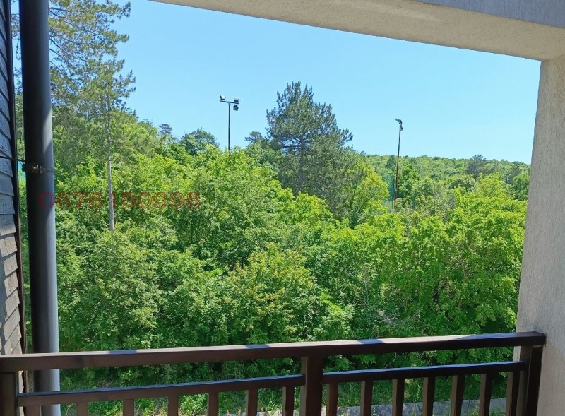 Разпределението на апартамента е едно от най-добрите в комплекса, включва просторна всекидневна с кухненски бокс, спальня (в момента без преградна стена), баня с тоалетна и прозорец, красива широка тераса с панорамна гледка към гората и планината.
