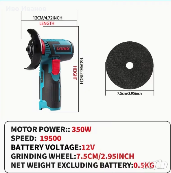 размер, голяма мощ – идеалният помощник за всеки майстор.Мини ъглошлайфът LYUWO 12V е