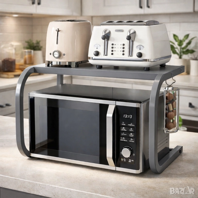 Поставка органайзер за микровълнова фурна, многофункционална, изработена от метал - сива, снимка 1 - Други - 53556376 Поставка органайзер за микровълнова фурна, многофункционална, изработена от метал - сива, снимка 2 - Други - 53556376 1/2