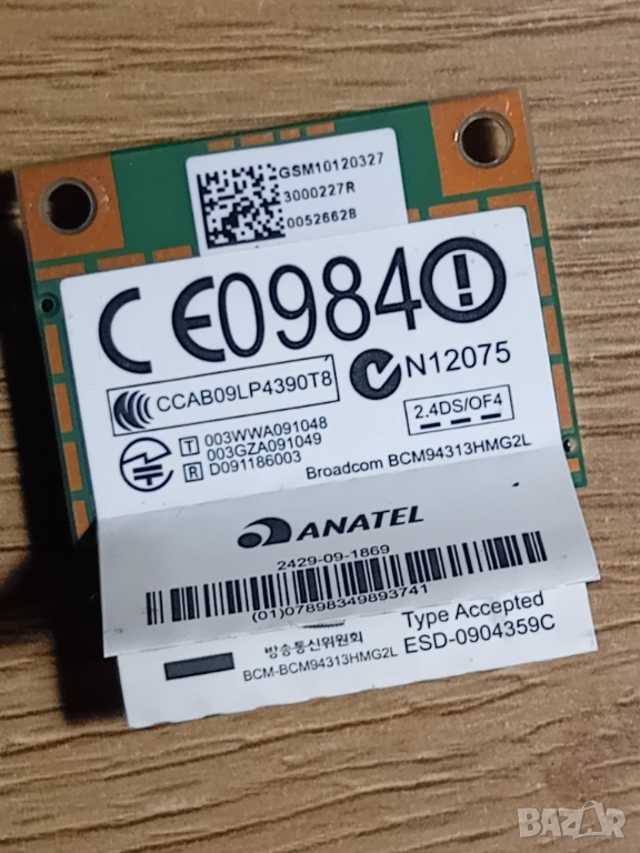 Продавам работеща комбинирана безжична карта Broadcom BCM94313HMG2L (модел WPEB-121GN). Картата поддържа Wi-Fi стандарти 802.11 b/g/n и разполага с интегриран Bluetooth. Перфектна за подмяна на дефектна карта или ъпгрейд на лаптоп.