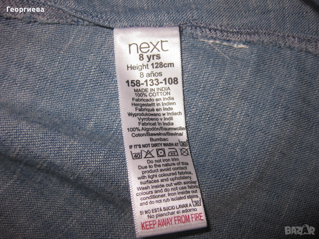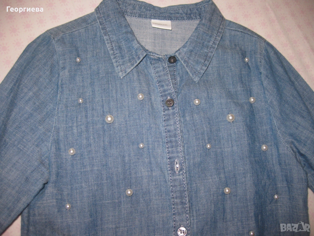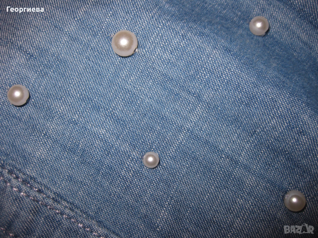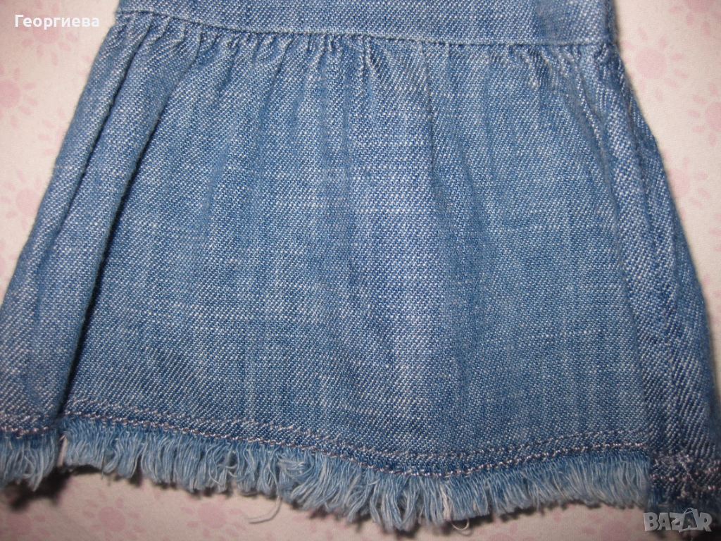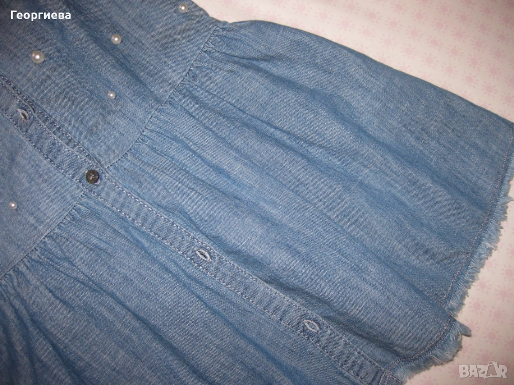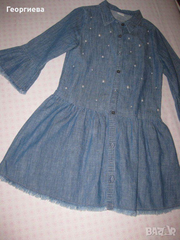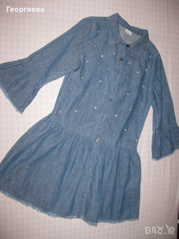 Перлена рокля, която може да се носи и като туника от по-голямо момиченце. Обличана е само веднъж за два часа, неразличима е от нова. По етикет 8 годинки и си отговаря на категорията. Детайлите са прелестни, както се вижда и от снимките. Денимът не е плътен.
