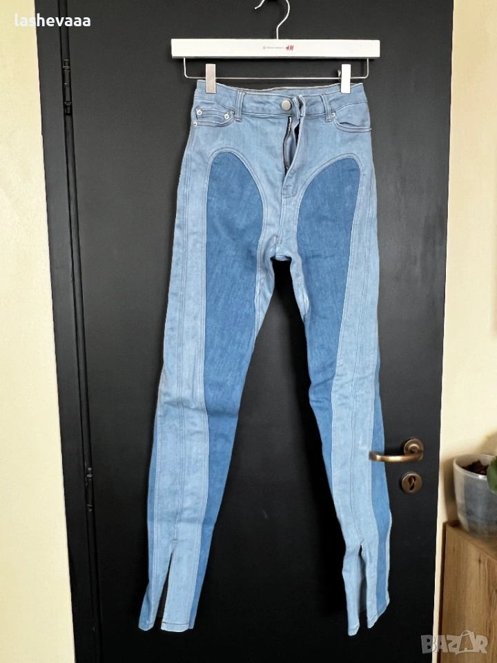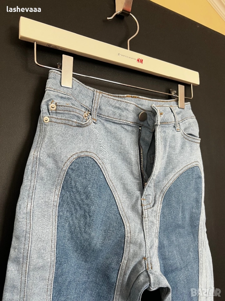 Дънки тип Mugler - размер С - носен 2/3 пъти - в перфектно състояние, единствено отзад трябва да пришие, ще прикача снимка - купени за 50€, моята цена е 25€