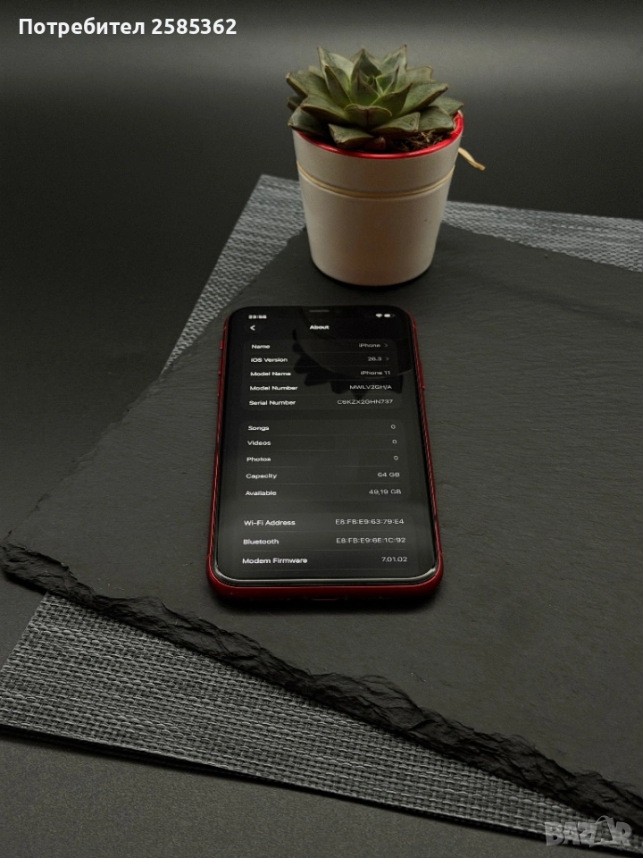 iPhone 11 64 Gb (Red). Устройството е фабрично отключено към всички оператори и е без никакви акаунти (чист iCloud).