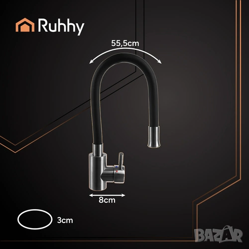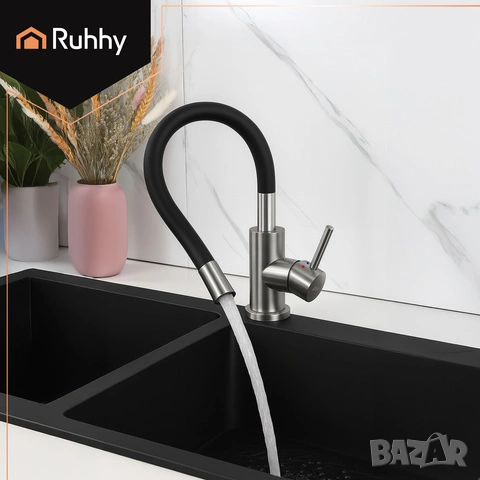 • Гъвкав смесител за кухня с въртене на 360° за максимално удобство