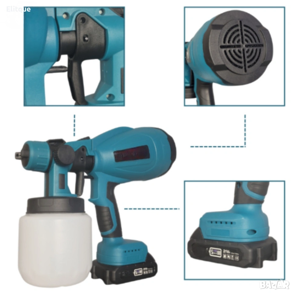 Акумулаторен и безжичен пистолет за боядисване с 2 батерии 21V