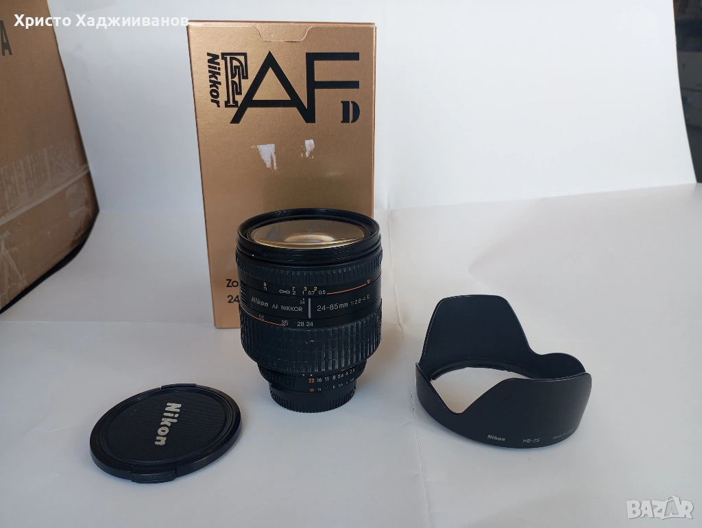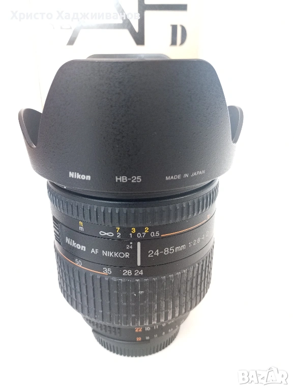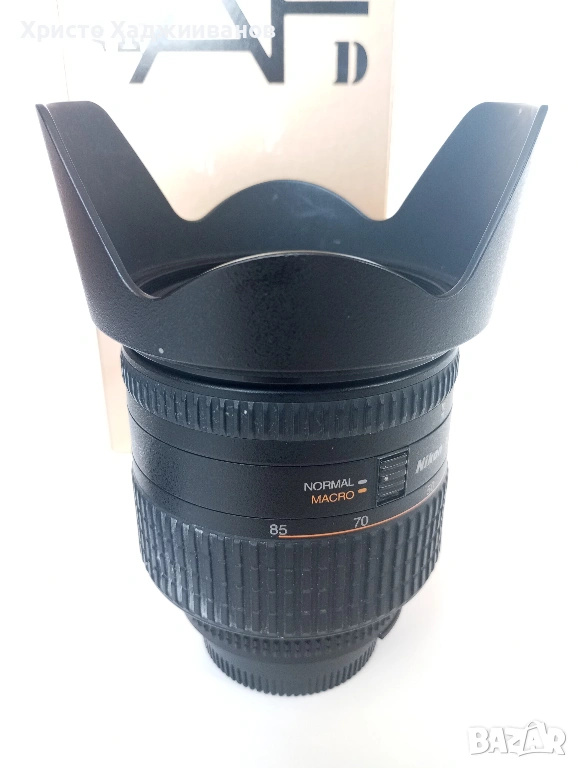 Продавам обектив произведен в Япония Nikon AF 24-85mm f/2.8-4D (има макро режим 1:2) в много добро състояние. Закупен е от Швейцария с оригинални капачки, сенник и оригинална опаковка, . Ползвал съм го рядко в продължение на една година - обектива е здрав и нямам забележки.