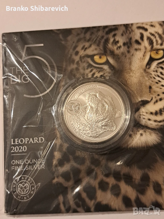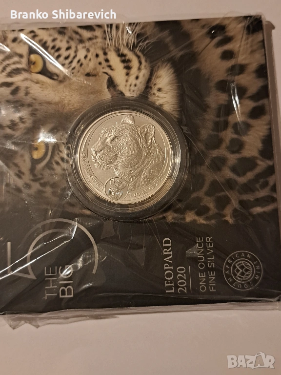 Предлагам сребърна монета 1oz ( ag.999 ) Leopard 🐆 2020, от престижната серия " The big 5 " в оригинална блистерна опаковка.