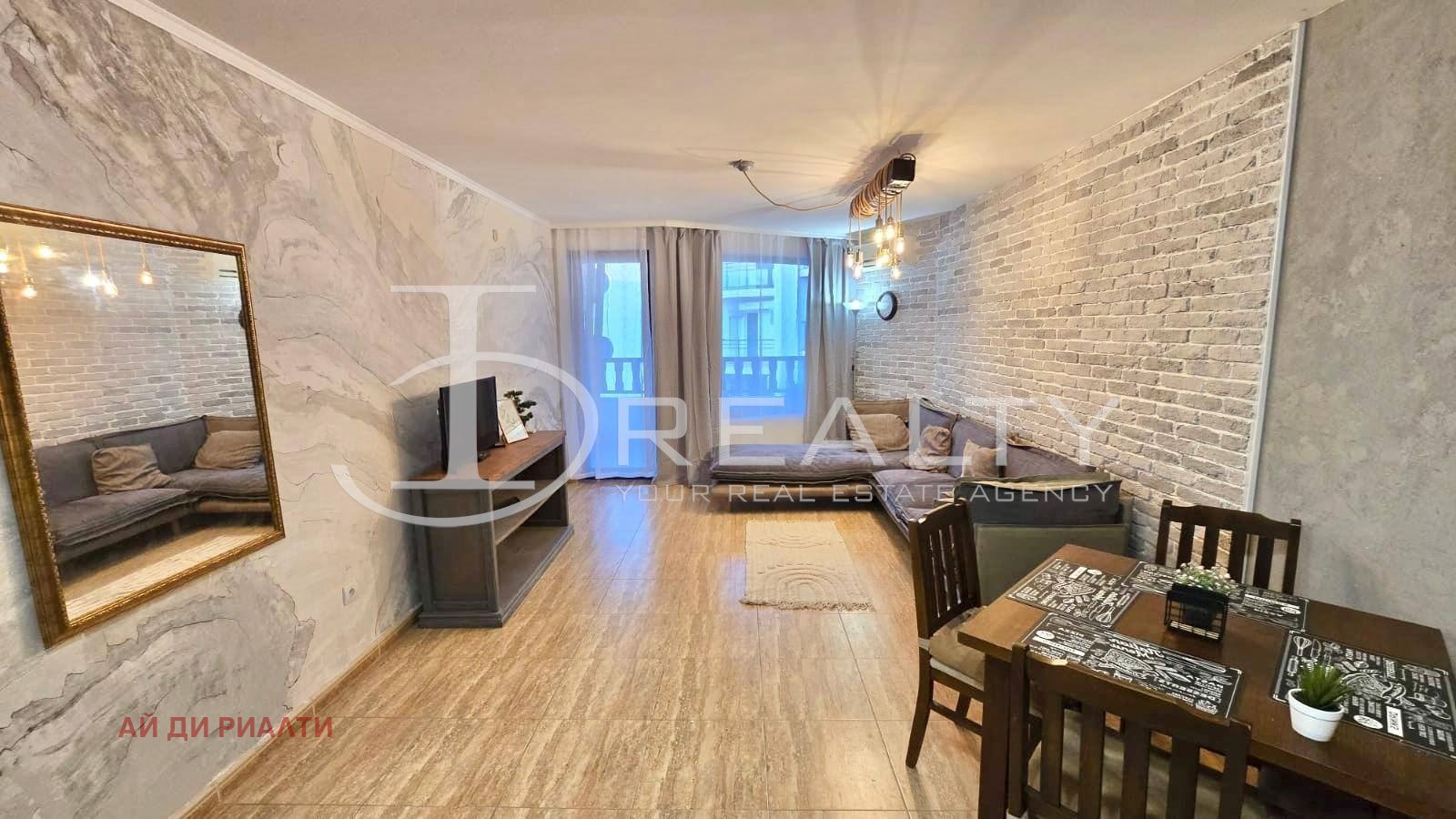 ID Realty Ви представя обзаведен двустаен апартамент в затворен комплекс гр. Свети Влас. Апартаментът се състои от антре,просторна всекидневна с кухненска част, една спалня, баня с тоалетна и тераса с гледка към морето. Жилището се продава напълно обзаведено с наличните мебели и техника. Подходящ за целогодишно живеене или с цел инвестиция.
