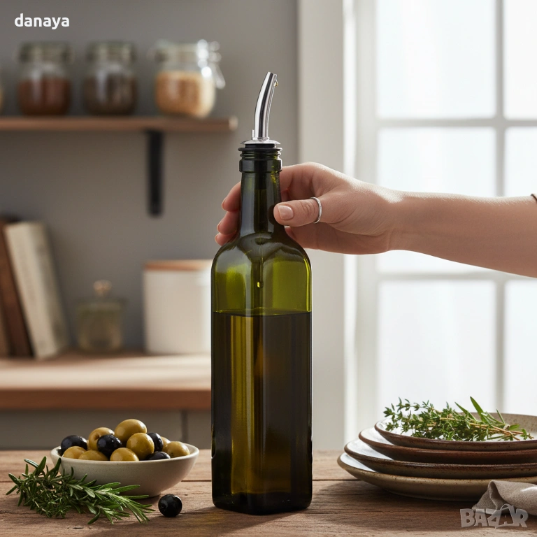 Подходящ за: олио, зехтин, оцет, течни подправки, вино и алкохол