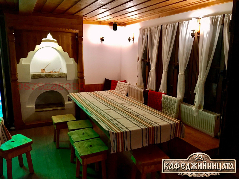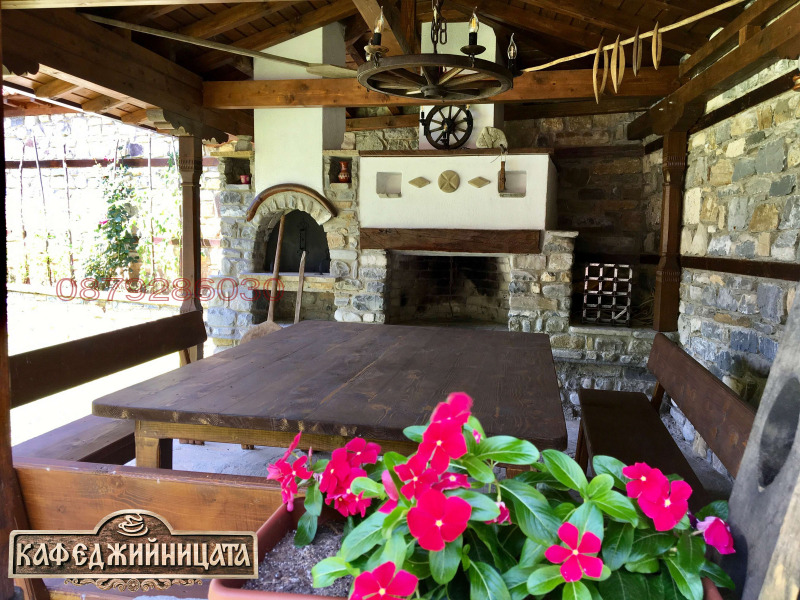 - ГОЛЯМА двуетажна къща хотел състояща се от 4 двойни стаи със самостоятелна баня и тоалетна, две тераси, ресторант/механа/конферентна зала с камина и оджак (възрожденска камина/огнище за кафе на пясък)