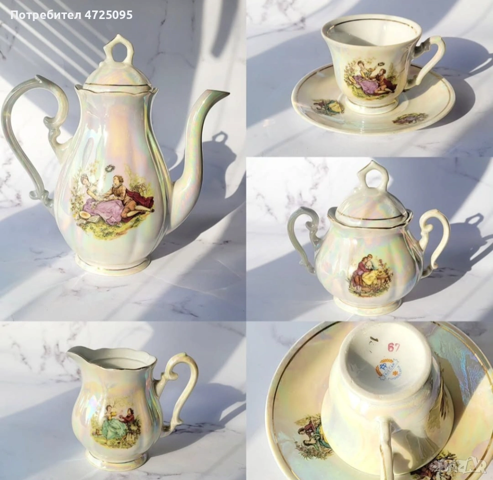 Винтидж порцеланов сервиз за чай със седефено покритие. Югославия