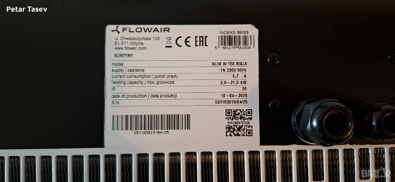 Flowair SLIM-W 150 (9kw) въздушна завеса с топла и студена вода → Обява 53557742