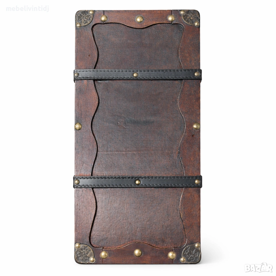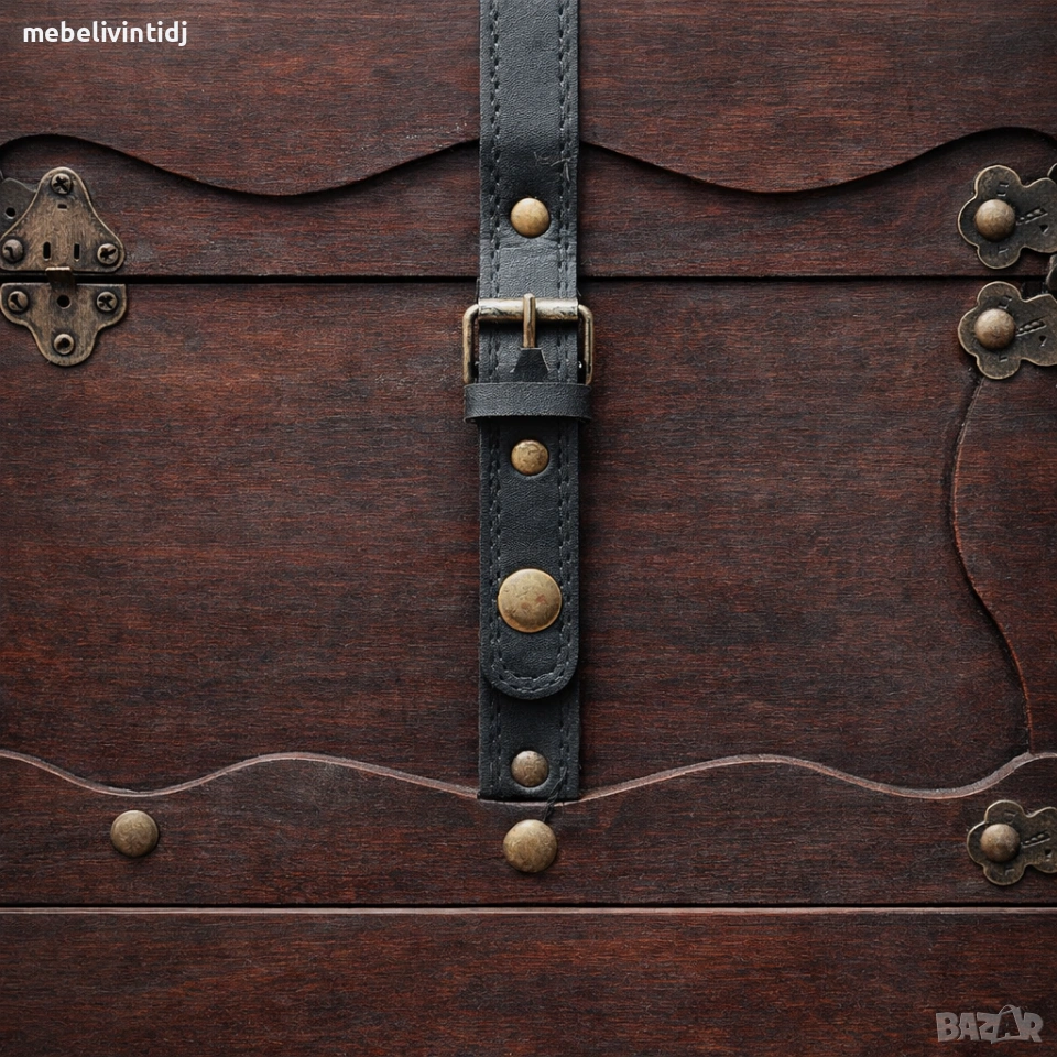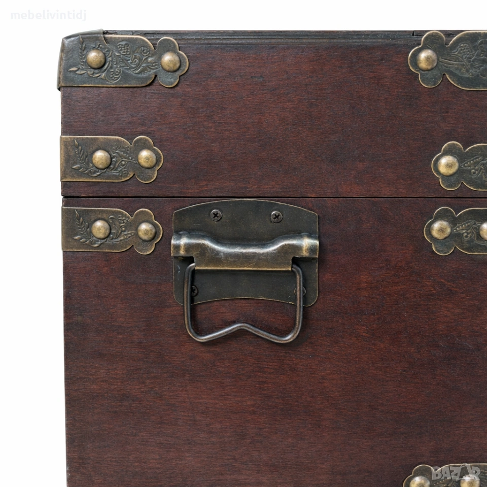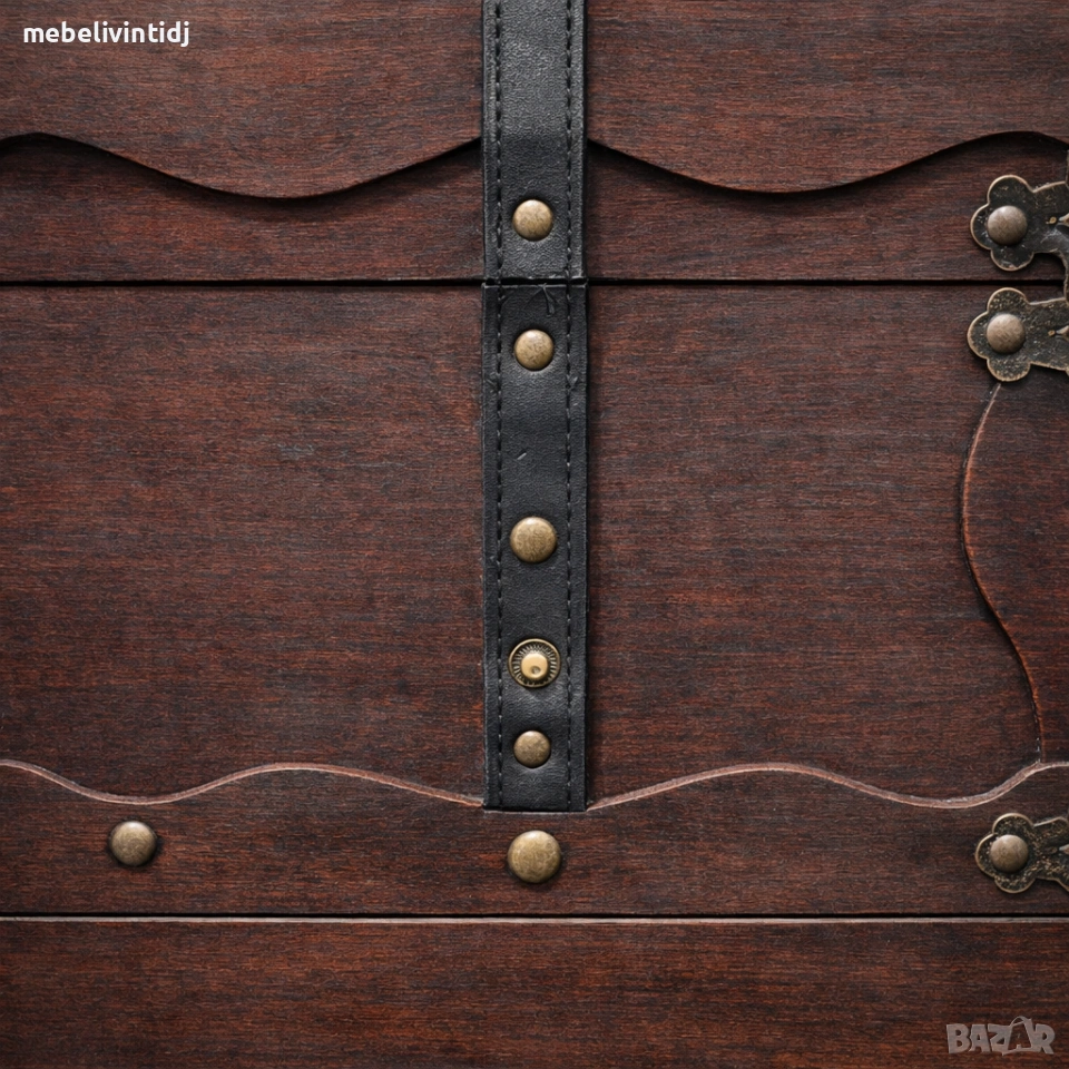 Антична дървена ракла с метални обкови и класическа винтидж визия. Здрава изработка и красиви детайли – подходяща за съхранение, декорация или стилен акцент в интериора