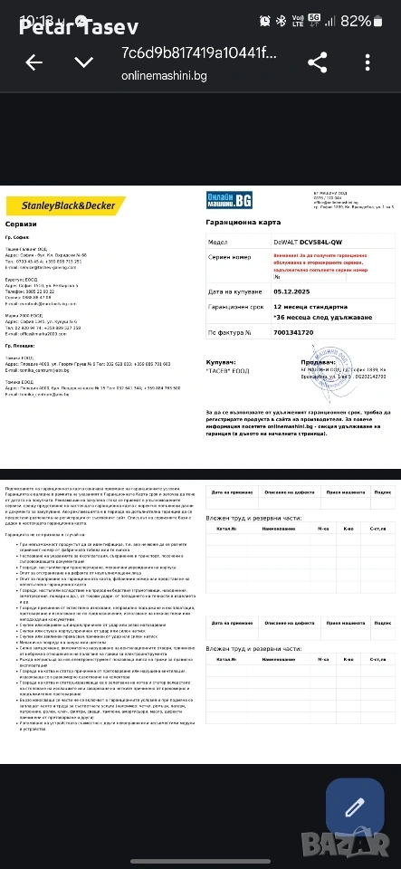 Акумулаторна прахосмукачка за сухо и мокро почистване DeWALT DCV584L, → Обява 53557768