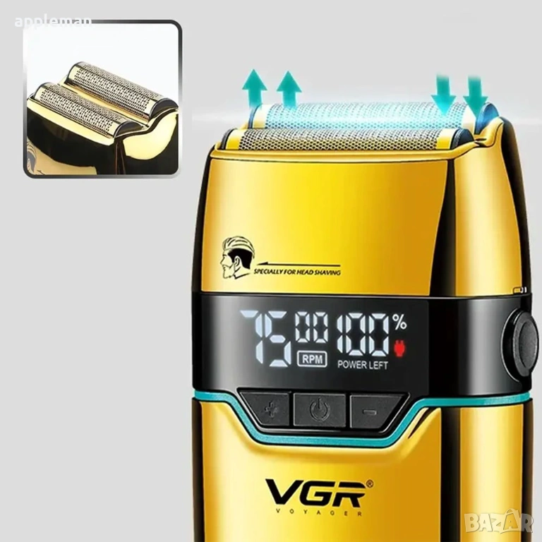 VGR V-350 от серията Super Trim е професионален шейвър, създаден за изключително прецизно бръснене на гладко обръсната глава и оформяне на брада. Моделът разполага с двойна бръснеща глава с две независимо движещи се мрежи, които следват контурите на лицето и главата, осигурявайки близко и комфортно бръснене без раздразнение.