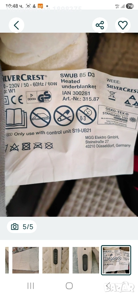Ел.одеяло с таймер, снимка 1 - Други - 53558240 Ел.одеяло с таймер, снимка 2 - Други - 53558240 Ел.одеяло с таймер, снимка 3 - Други - 53558240 Ел.одеяло с таймер, снимка 4 - Други - 53558240 Ел.одеяло с таймер, снимка 5 - Други - 53558240 1/5