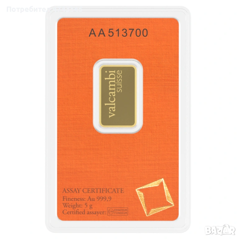 Valcambi 5 грама златно кюлче - компактна сигурност