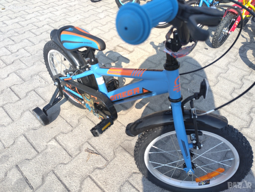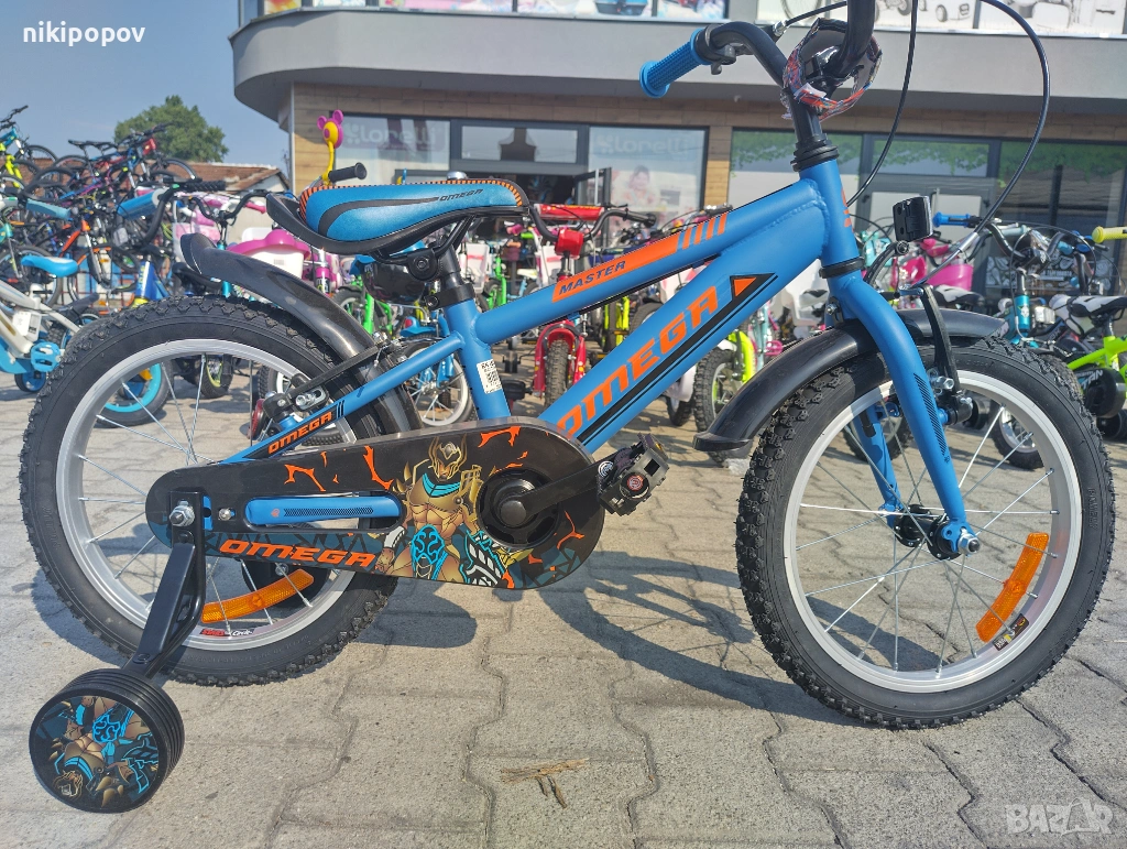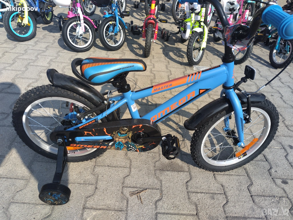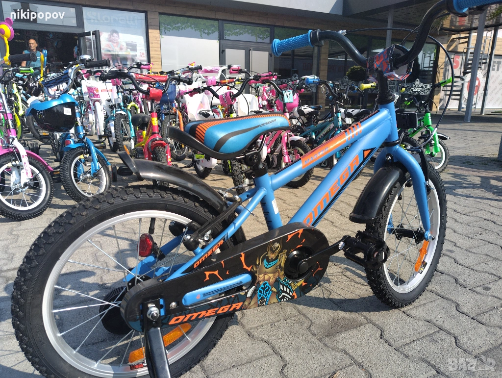 *Детският велосипед на Omega Bikes е един прекрасен избор за децата между 4 и 6-годишна възраст и височина от 100 до 120см. Возилото е снабдено с помощни колела, посредством които детето ще усъвършенства умението си да балансира на две гуми неусетно. Рамката е метална. Велосипедът е с алуминиеви капли. Разполага с предна и задна V-brake спирачка, пластмасови калници и предпазител на веригата.