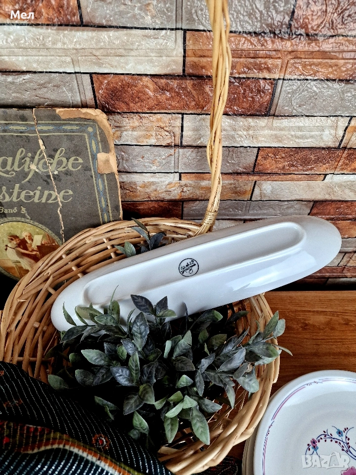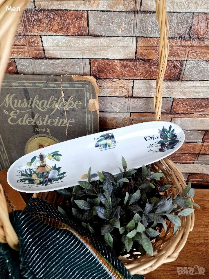 Страхотна, продълговата чиния за маслини. Порцеланова и в перфектно състояние, без никакви забележки!