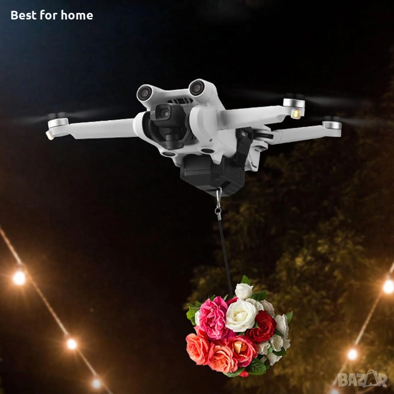 Хвърляч на дронове, способен на дистанционна доставка, използва се за реклама, хвърляне на стръв, доставка на храна, доставка на сватбени халки.
