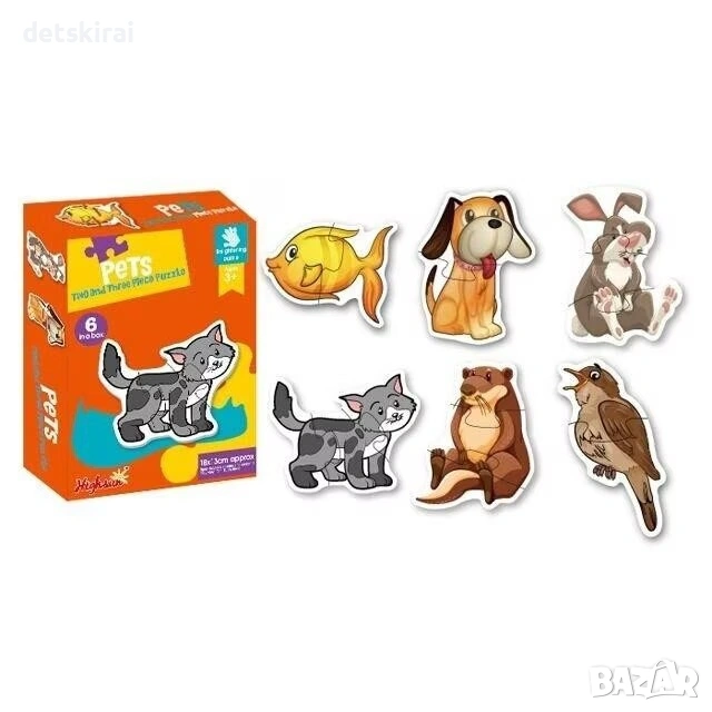 Изберете лесени пъзели с едри части – 6 мини пъзела по 2–3 елемента и подарете на вашето дете магически мигове на игра и учене!