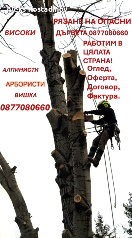 МИНЕРВА АРБО ЕООД- разполага с екип от сертифицирани професионалисти катерачи арбористи за рязане и кастрене на опасно високи дрвета в трудно достъпни места , тесни дворове и тежки терени. РАЗДРОБЯВАНЕ И ИЗВОЗВАНЕ!