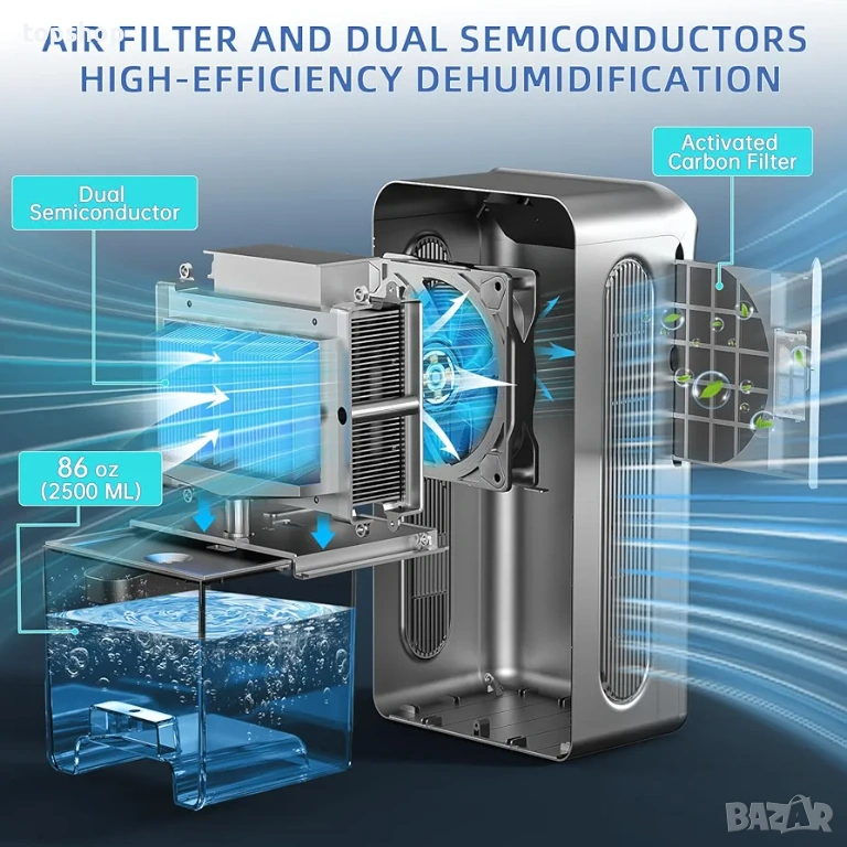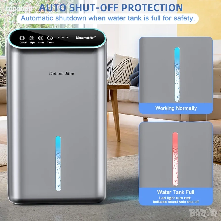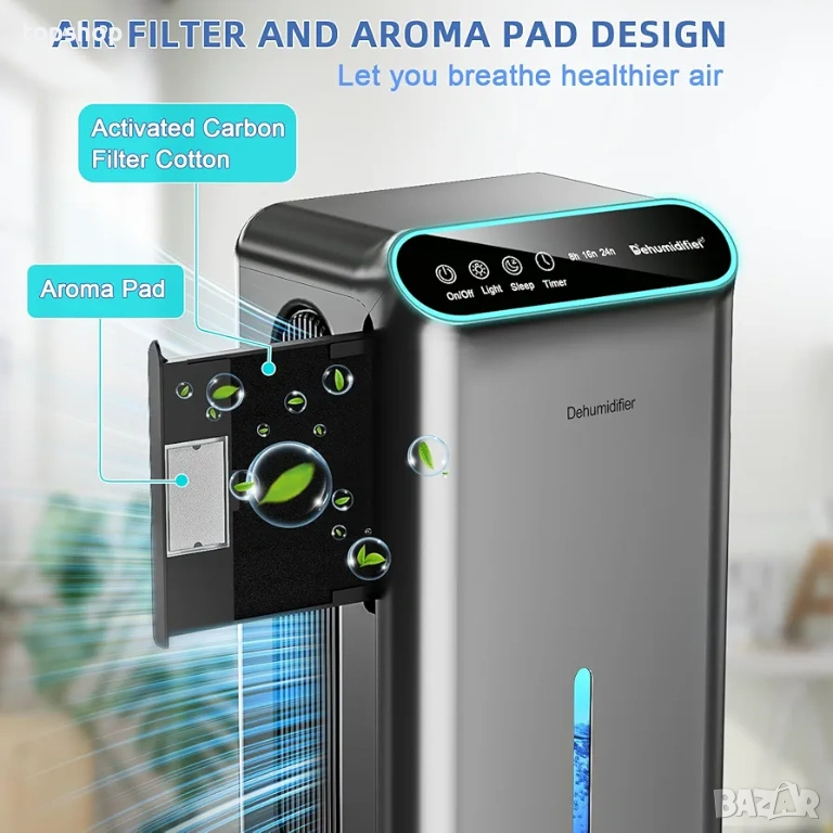 2 в 1 функция: Освен че обира влагата, има кутийка за етерични масла. Работи като дифузер, за да ухае стаята ви прекрасно.