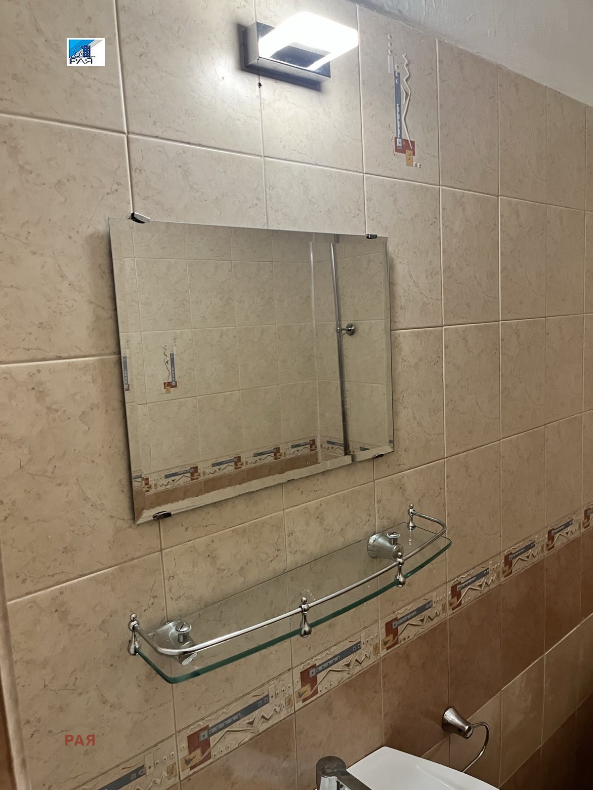 Южен, светъл и топъл апартамент, еднопространствено помещение с функционално разделени зони - дневна с кухненски бокс и спалня, баня с тоалетна, тераса. ТЕЦ-ът е спрян, но има централно захранване с топла вода. Кухненски бокс - котлони, абсорбатор, пералня и хладилник. Голям вграден гардероб, маса за хранене, ниска маса, секции, малък диван (възможна е смяна с по-нов).