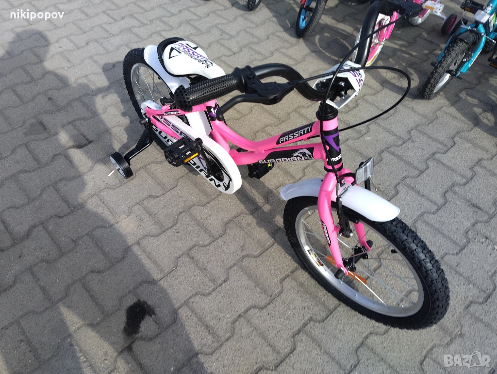 *Детският велосипед на Passati Bikes е един прекрасен избор за децата между 5 и 7-годишна възраст и височина от 110 до 130см. Возилото е снабдено с помощни колела, посредством които детето ще усъвършенства умението си да балансира на две гуми неусетно. Рамката е алуминиева. Разполага с предна и задна V-brake спирачка, пластмасови калници и предпазител на веригата.
