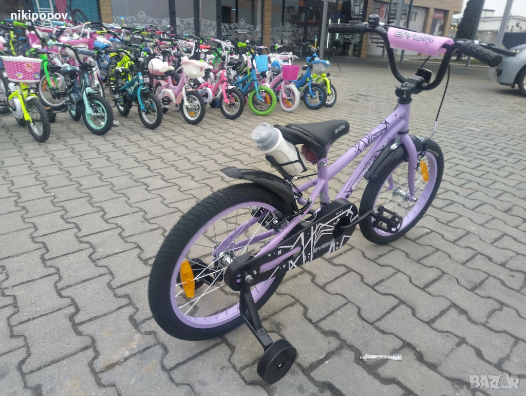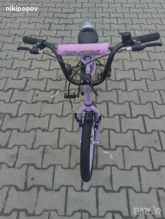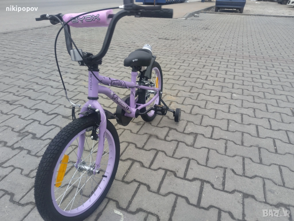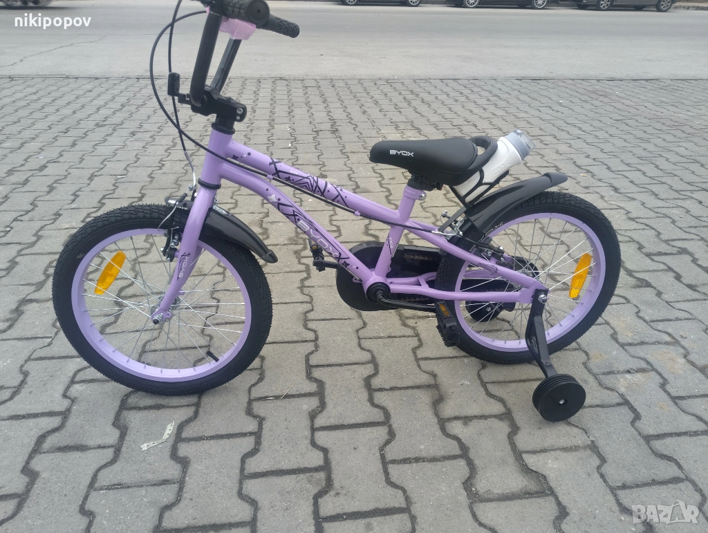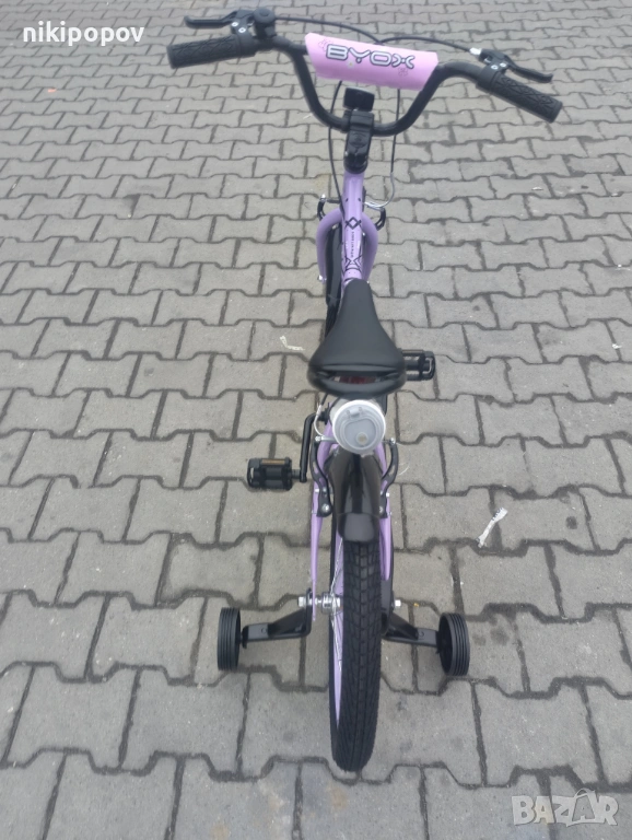 *Детският велосипед на Byox Bikes е един прекрасен избор за децата между 5 и 7-годишна възраст и височина от 110 до 130см. Возилото е снабдено с помощни колела, посредством които детето ще усъвършенства умението си да балансира на две гуми неусетно. Рамката е метална. Разполага с предна и задна V-brake спирачка, пластмасови калници и предпазител на веригата.