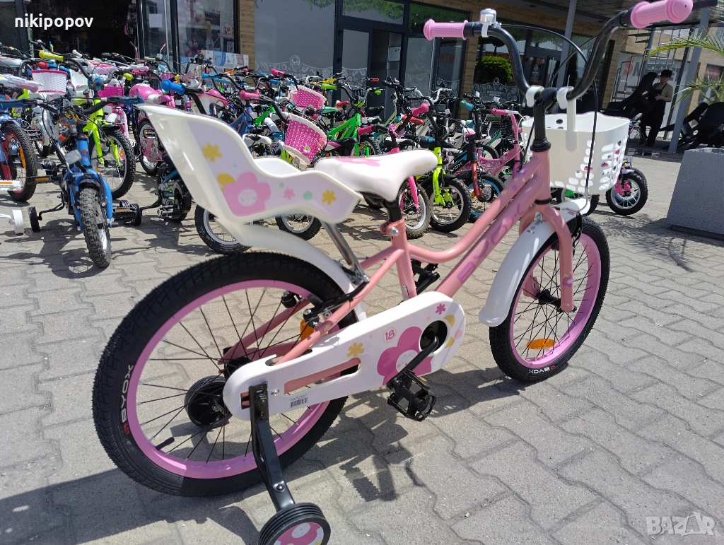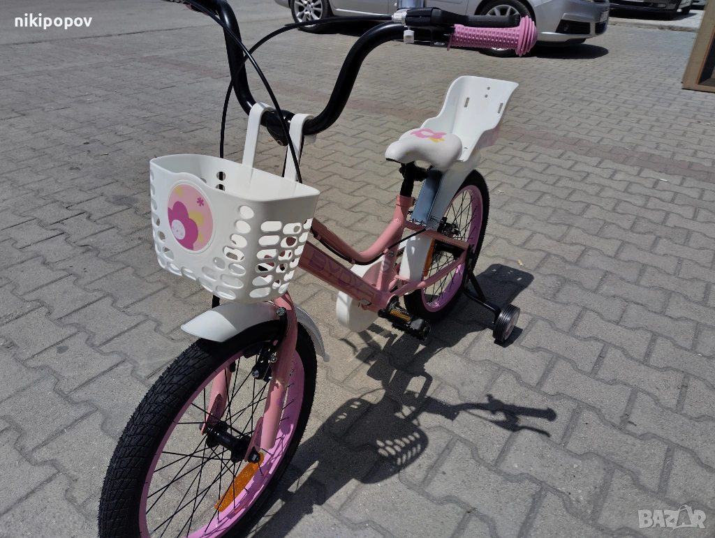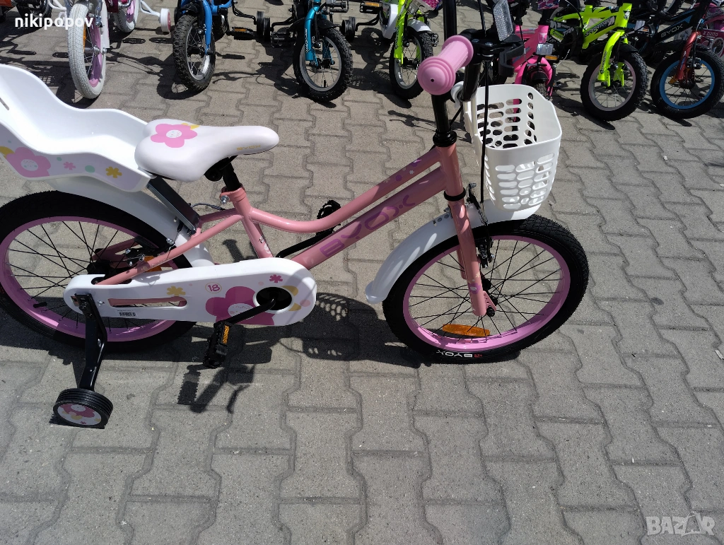 *Детският велосипед на Byox Bikes е един прекрасен избор за децата между 5 и 7-годишна възраст и височина от 110 до 130см. Возилото е снабдено с помощни колела, посредством които детето ще усъвършенства умението си да балансира на две гуми неусетно. Рамката е метална. Разполага с предна и задна V-brake спирачка, пластмасови калници и предпазител на веригата.