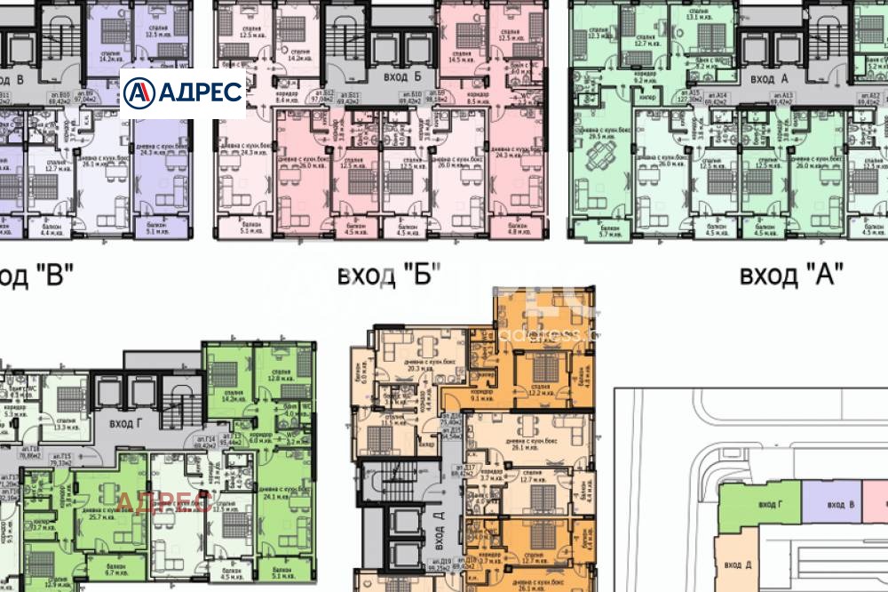 За продажба има разнообразие от двустайни, тристайни и многостайни апартаменти. В продажба са и подземни паркоместа.