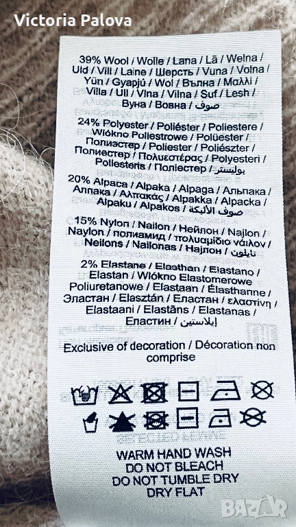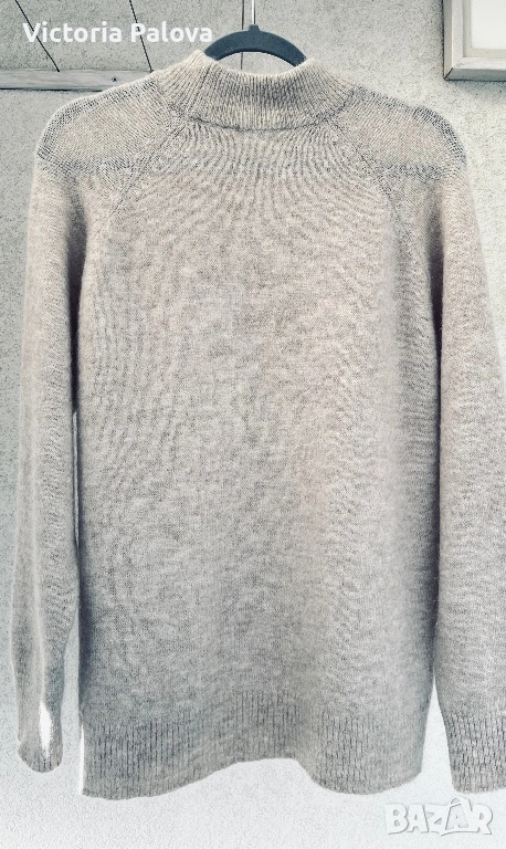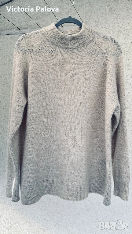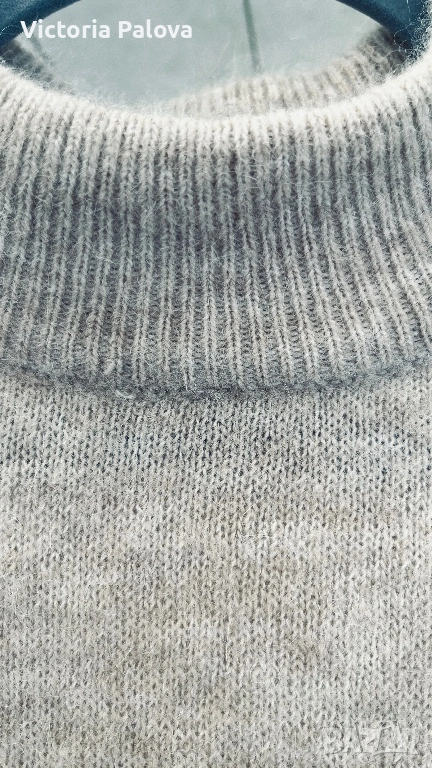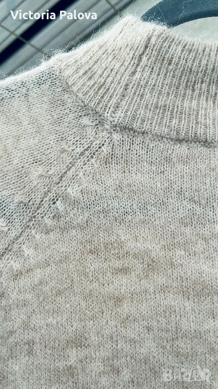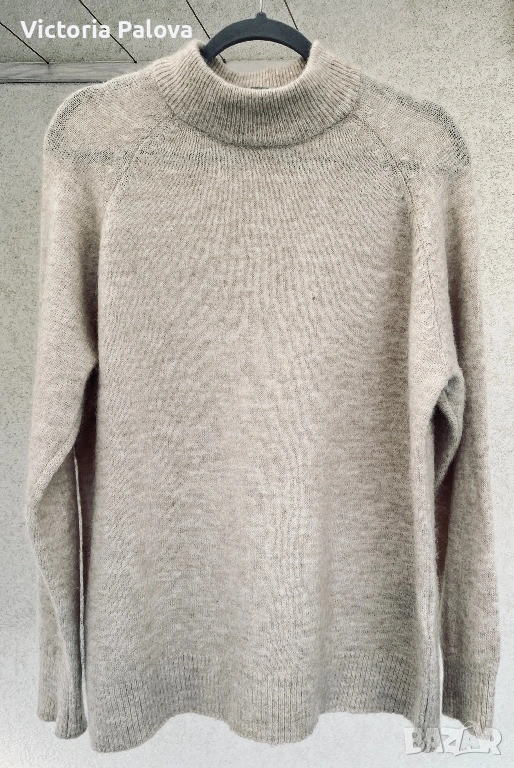 Луксозен дамски пуловер от скандинавската марка SELECTED FEMME , известна с минималистичния си дизайн, качествени материи и естетиката на т.нар. “тих лукс”. Премиум смес : 39% вълна, 20% алпака, 24% полиестер, 15% найлон и 2% еластан, което го прави мек, пухкав, въздушен и топъл, без да тежи. Плетката е фина, леко космата и приятна на допир. Моделът е с реглан ръкави, падащи красиво по раменете с relaxed oversize силует. Яката е класическа кръгла с широк рипс борд. Долният рипс завършек оформя силуета , без да пристяга. Цветът е екрю, oatmeal , много изискан нюанс, типичен за премиум колекции. Магазинна цена е 99.99 €. Рамо - реглан, ГО - 62см, дължина - 71см, ръкав от мишница - 49см.