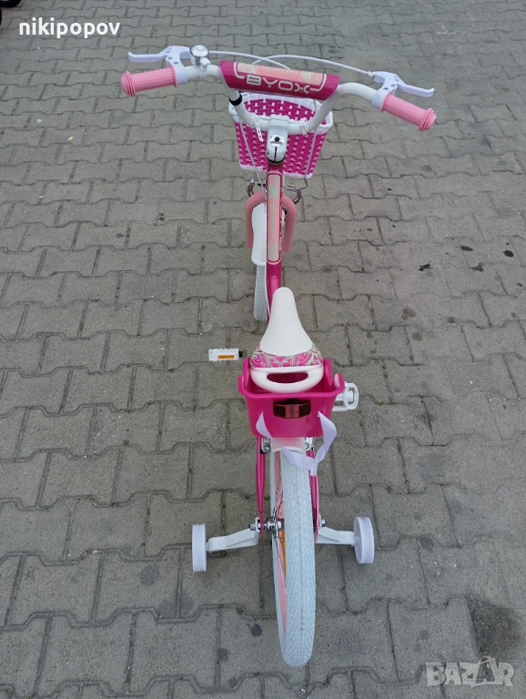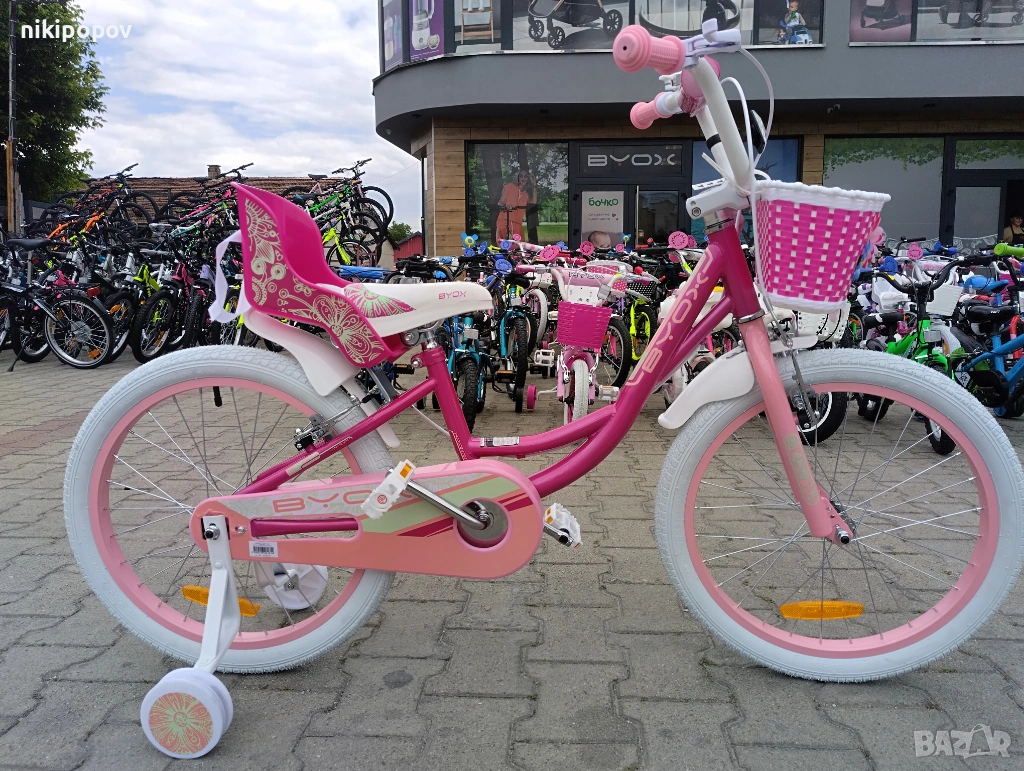 *Детският велосипед на Byox Bikes е един прекрасен избор за децата между 6 и 8-годишна възраст и височина от 120 до 140см. Возилото е снабдено с помощни колела, посредством които детето ще усъвършенства умението си да балансира на две гуми неусетно. Рамката е стоманена. Разполага с предна и задна V-brake спирачка, пластмасови калници и предпазител на веригата.