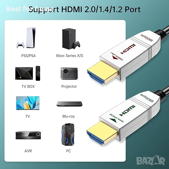 Не всички телевизори поддържат HDR10, HDCP 2.2 или 4K 60Hz, но нашата линия оптични кабели отговаря на спецификацията HDMI 2.0 (4K видео 60 Hz, 2160p, HDR10, HDCP2.2, ARC, 48 bit/px дълбочина на цвета), която поддържа честотна лента до 18Gbps и е обратно съвместима с по-ранни версии.