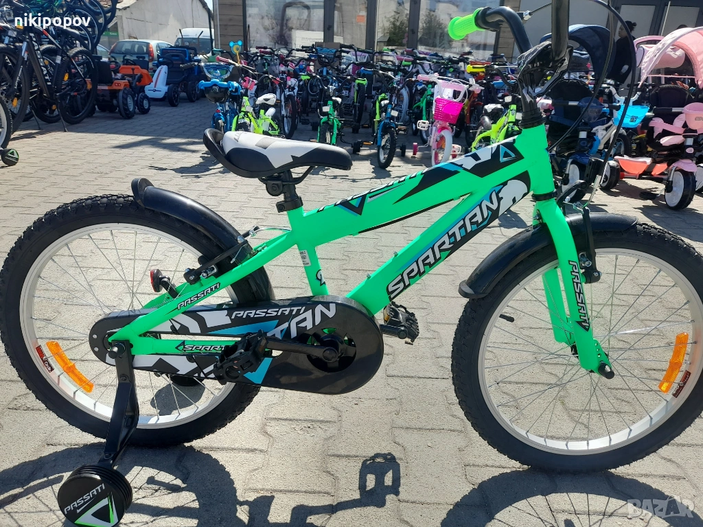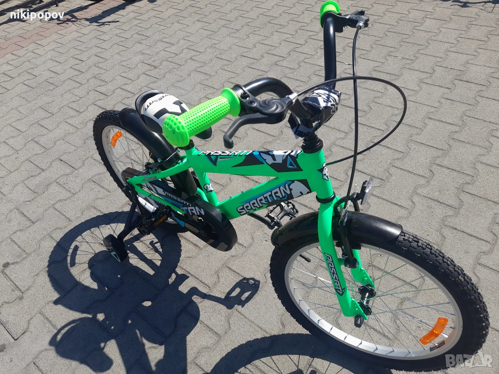 *Детският велосипед на Passati Bikes е един прекрасен избор за децата между 6 и 8-годишна възраст и височина от 120 до 140см. Возилото е снабдено с помощни колела, посредством които детето ще усъвършенства умението си да балансира на две гуми неусетно. Рамката е стоманена. Разполага с предна и задна V-brake спирачка, пластмасови калници и предпазител на веригата.