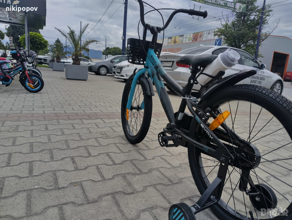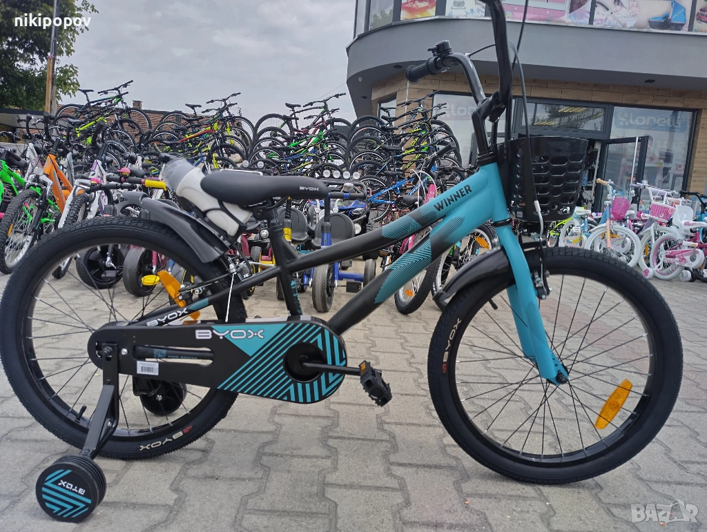 *Детският велосипед на Byox Bikes е един прекрасен избор за децата между 6 и 8-годишна възраст и височина от 120 до 140см. Возилото е снабдено с помощни колела, посредством които детето ще усъвършенства умението си да балансира на две гуми неусетно. Рамката е стоманена. Разполага с предна и задна V-brake спирачка, пластмасови калници и предпазител на веригата.