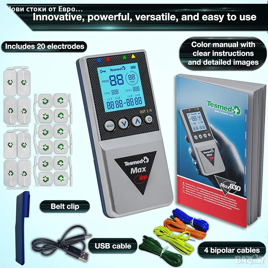 TESMED Max 830: Професионален мускулен стимулатор с TENS/EMS/